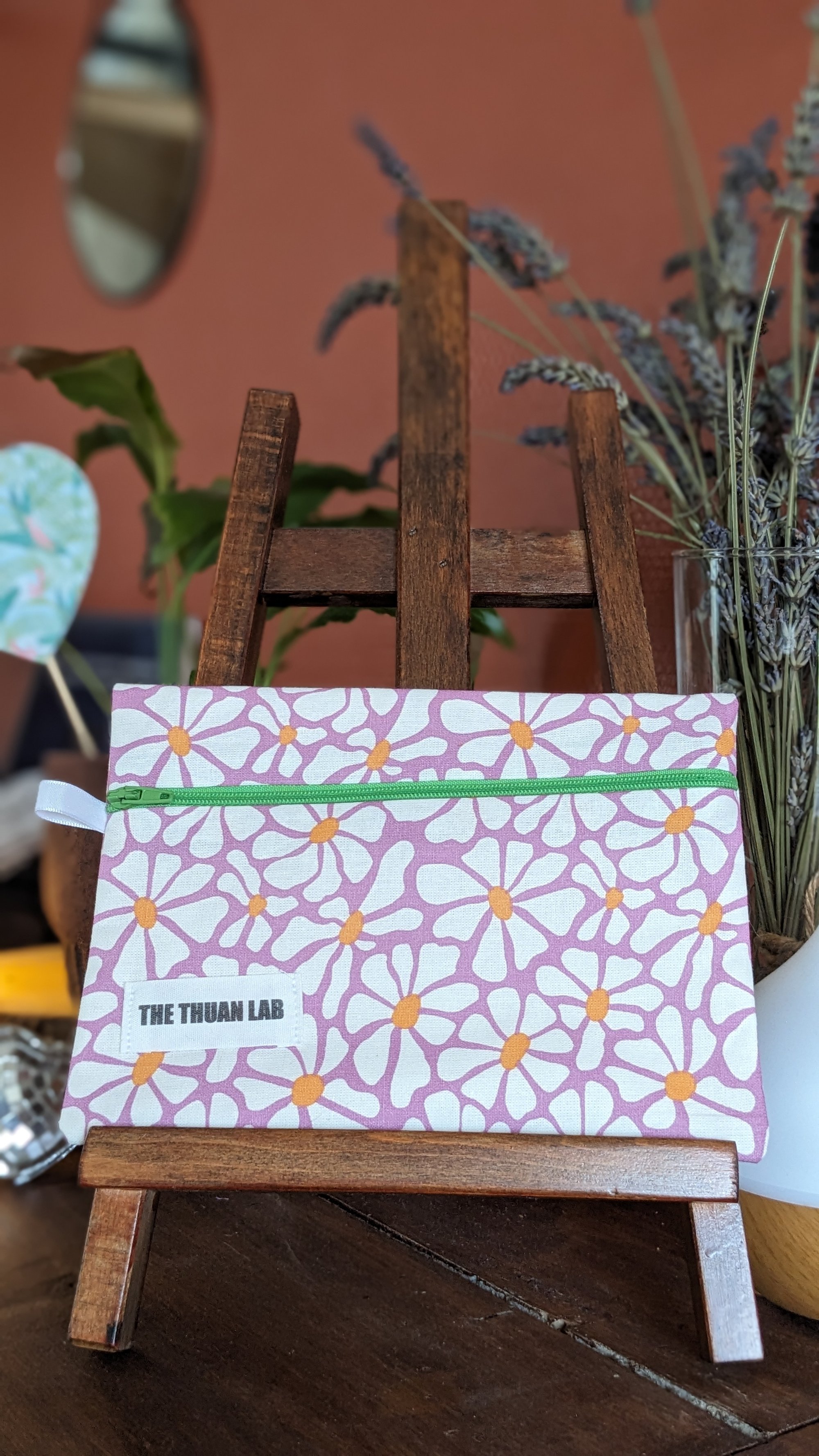 Pochette en coton imprimé, doublée d'un voile de coton coloré