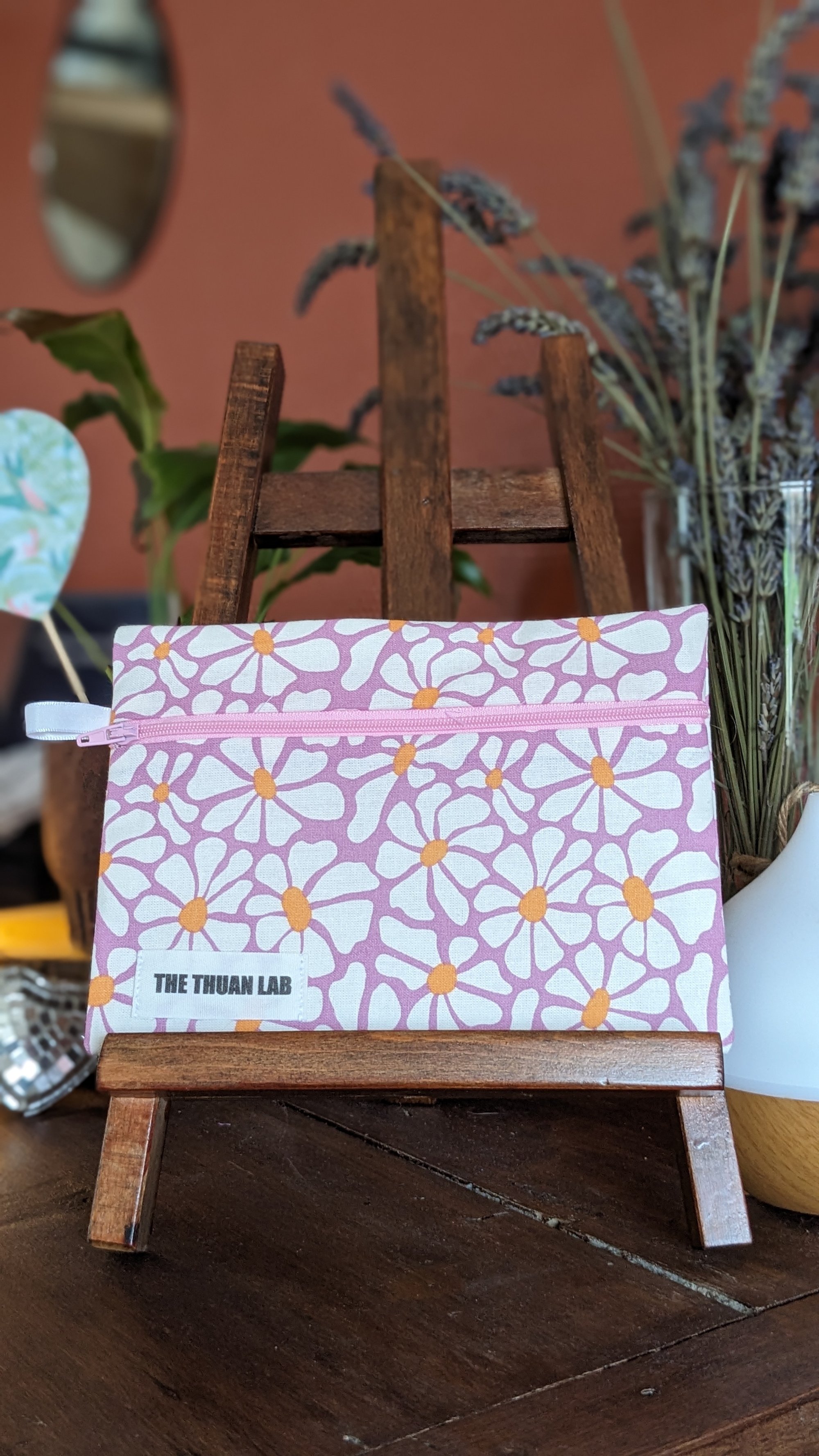 Pochette en coton imprimé, doublée d'un voile de coton coloré